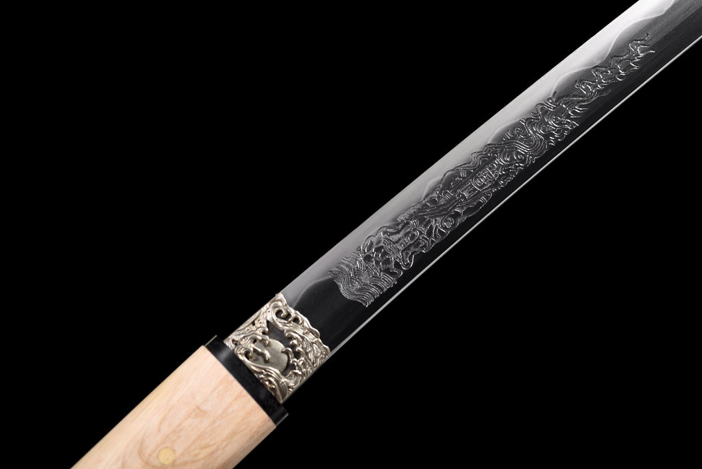 Die Kupferbeschläge sind fein gearbeitet mit traditionellen Motiven und verstärken die Eleganz des Katanas, während sie kompromisslose strukturelle Integrität gewährleisten. Jedes Element – vom Koiguchi bis zu Fuchi und Kashira – ist geschmiedet, um zu bestehen, und bietet eine perfekte Balance zwischen Verzierung und funktionaler Stärke.