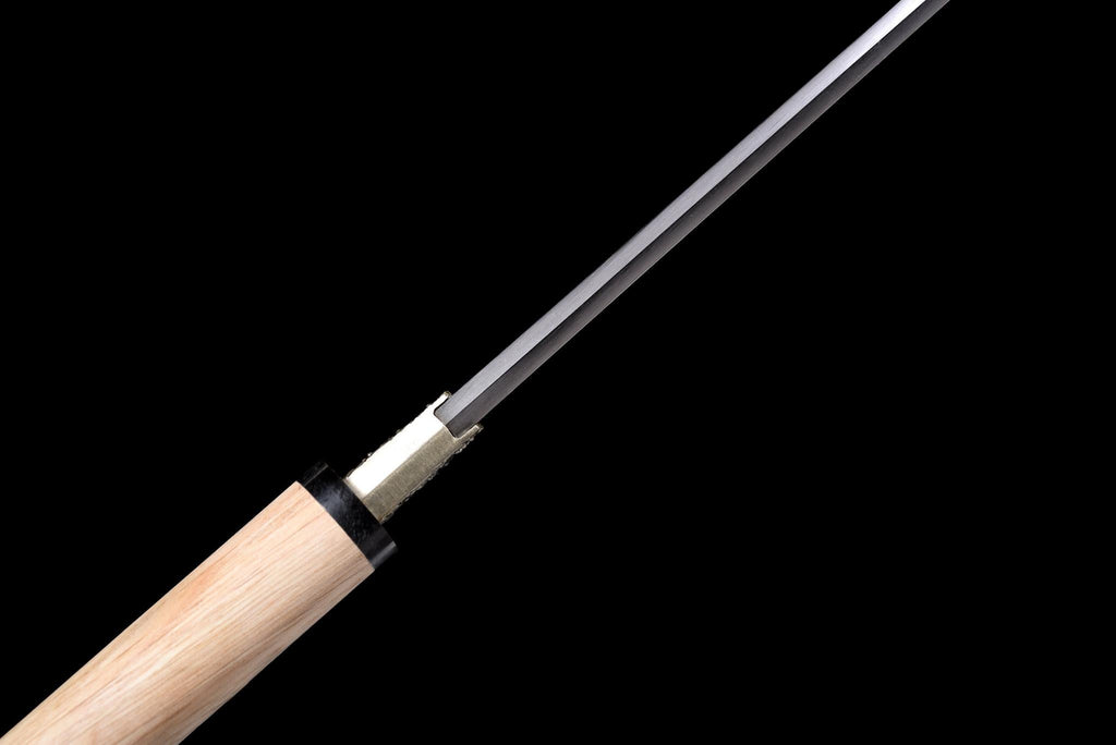 Die Shirasaya aus Naturholz unterstreicht den raffinierten Charakter des Katanas. Entworfen für Bewahrung, Reinheit und stille Präsenz, zollt sie der alten Tradition Tribut, meisterlich geschmiedete Klingen in unverzierten Montierungen aufzubewahren.