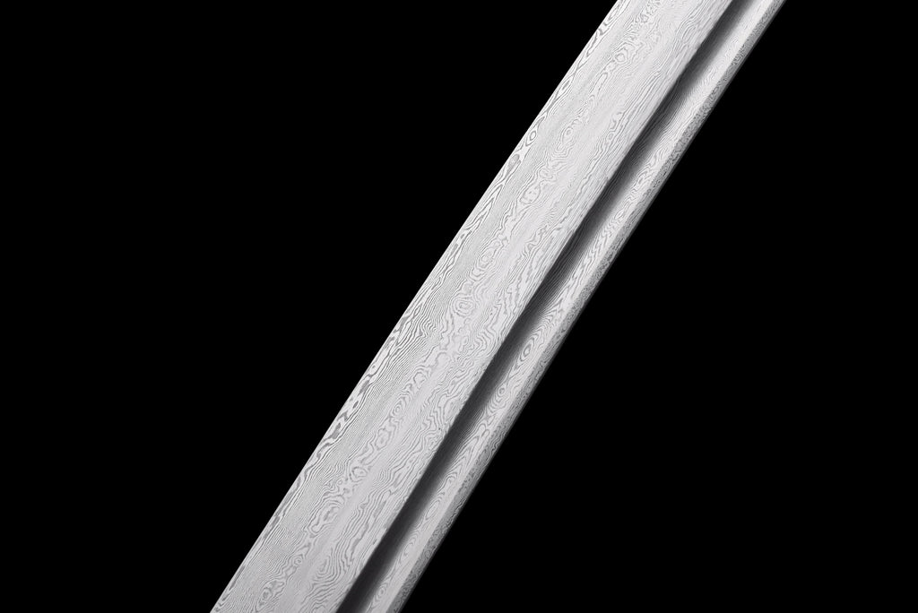 Das Ginryū Wakizashi 銀龍 („Silberner Drache“) zelebriert klassische japanische Ästhetik in kompakter Form. Die Klinge aus Damaststahl zeigt fließende Stahlschichten und vermittelt einen raffinierten, traditionellen Look.