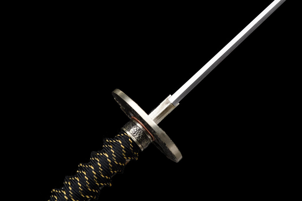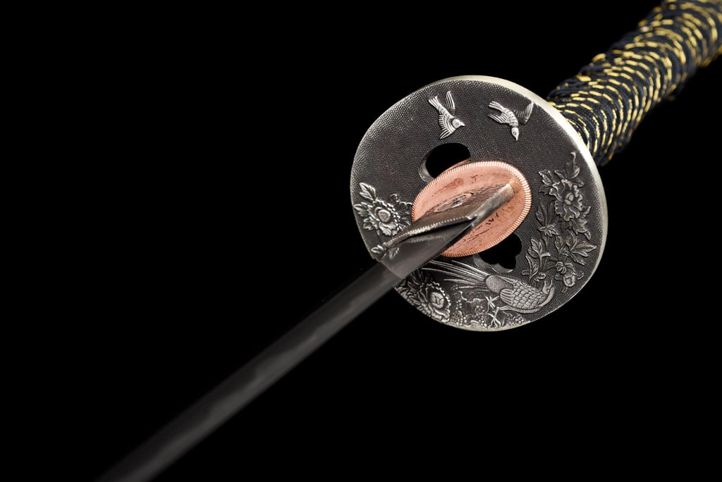 Das Kakuran Katana ("Kranich Sturm") ist eine prächtige Fusion von Gelassenheit und Kraft. Geschmiedet mit traditioneller SAN-MAI-Konstruktion, verkörpert diese Klinge die Harmonie der Eleganz des Kranichs und der ungezähmten Energie des Sturms. Die Schwarz-Gold-Farbpalette symbolisiert Balance — die stille Würde des Friedens im Chaos der Natur.