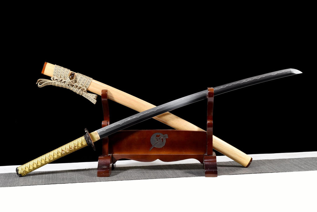 Das Kintsurugi (金鶴刀), oder "Golden Crane Blade", erfasst die Harmonie von Eleganz und Stärke. Inspiriert vom edlen Kranich — ein Symbol für Reinheit und Langlebigkeit in der japanischen Kultur — verbindet dieses Katana goldene Ausstrahlung mit verfeinerter Handwerkskunst. Die warme, natürliche Scheide ergänzt den leuchtenden Griff und die polierte Hamon perfekt und ergibt ein Meisterwerk von Balance und Gelassenheit.