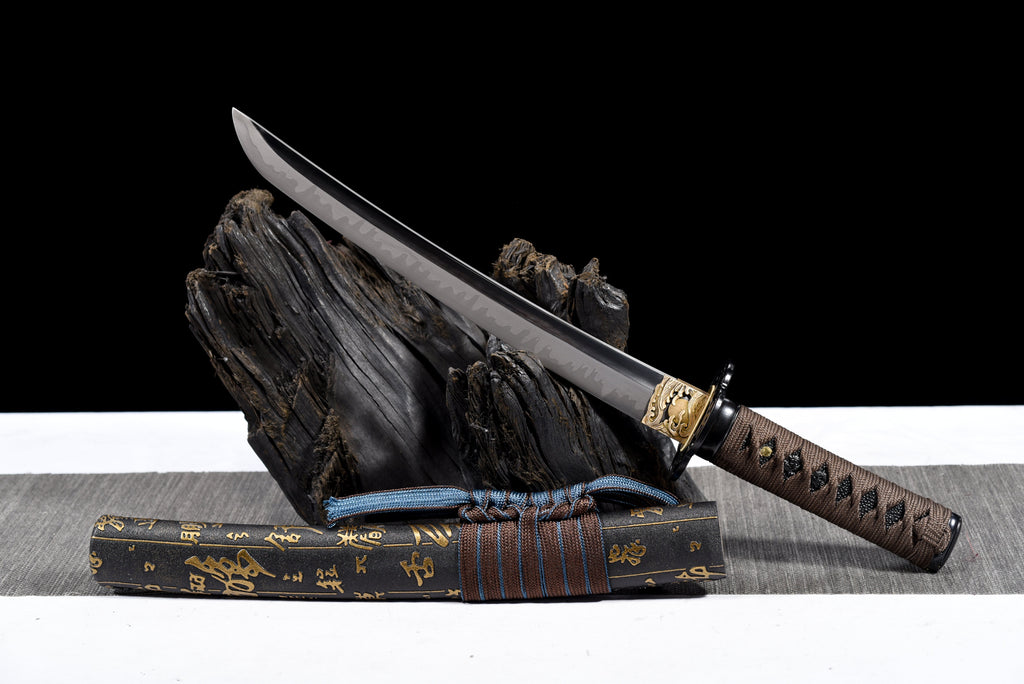 Das Kurogane Tantō 黒金短刀 ist eine meisterhaft gefertigte japanische Kurzblade, mit höchster Präzision geschmiedet und von traditioneller Kunst geprägt. Kompakt und dennoch kraftvoll, wurde das Tantō historisch von Samurai als Zweitwaffe getragen und für seine Vielseitigkeit im Nahkampf geschätzt.
