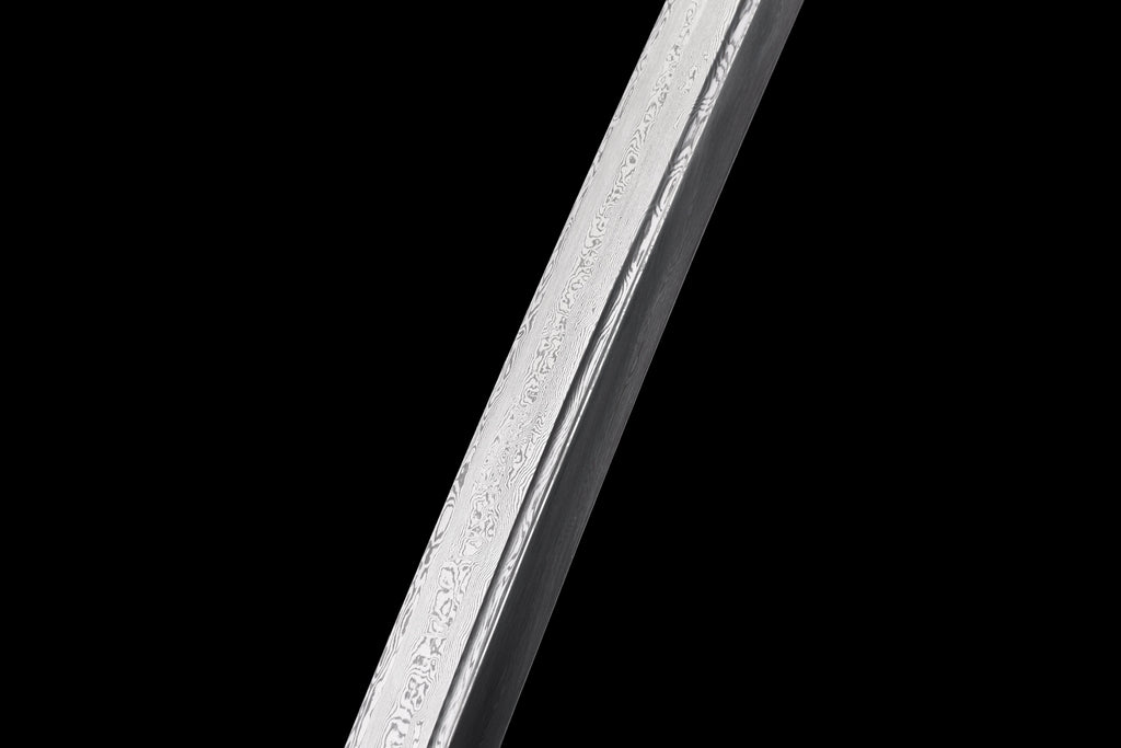 Das Kurotatsu Katana 黒龍 („Schwarzer Drache“) verkörpert Stärke, Mysterium und Kunstfertigkeit. Seine Klinge aus Damaststahl bietet nicht nur Haltbarkeit, sondern auch ein einzigartiges Lagenmuster, das seine visuelle Anziehungskraft unterstreicht.