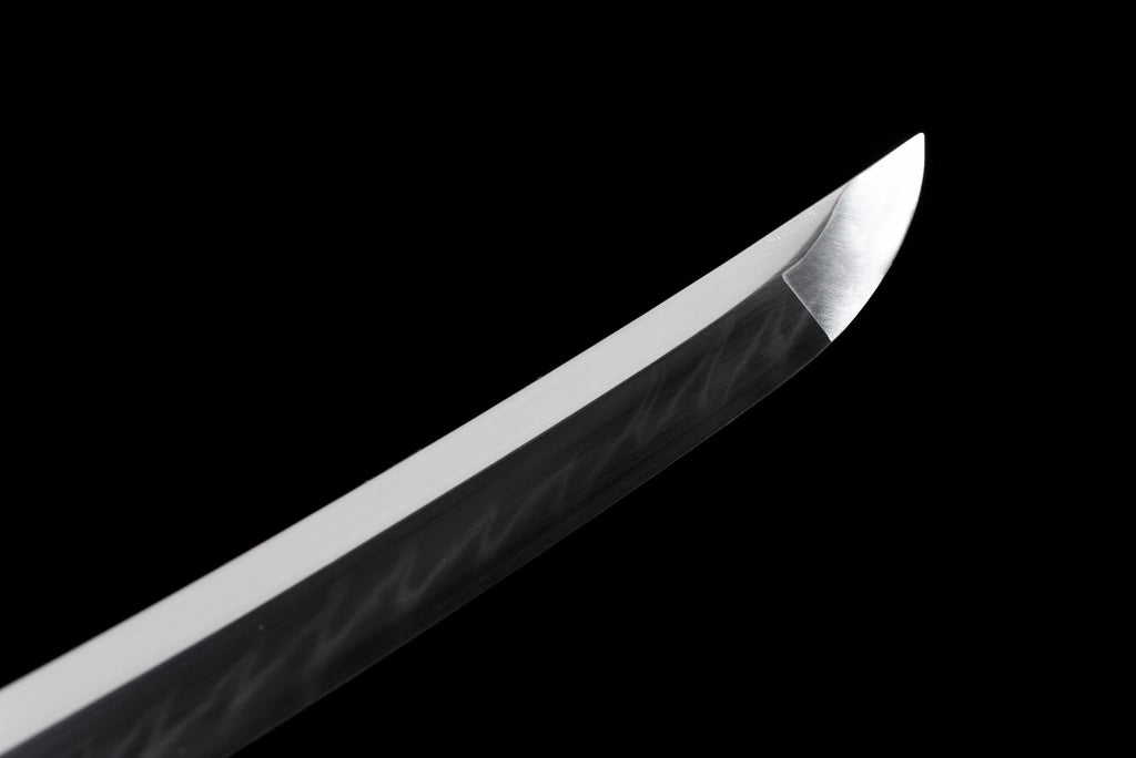 Handgeschmiedet aus T10-Hochkohlenstoffstahl mit einer natürlich geformten Hamon-Linie. Die Klinge bietet eine perfekte Balance aus Härte und Flexibilität, entworfen für Schönheit und Leistung. |