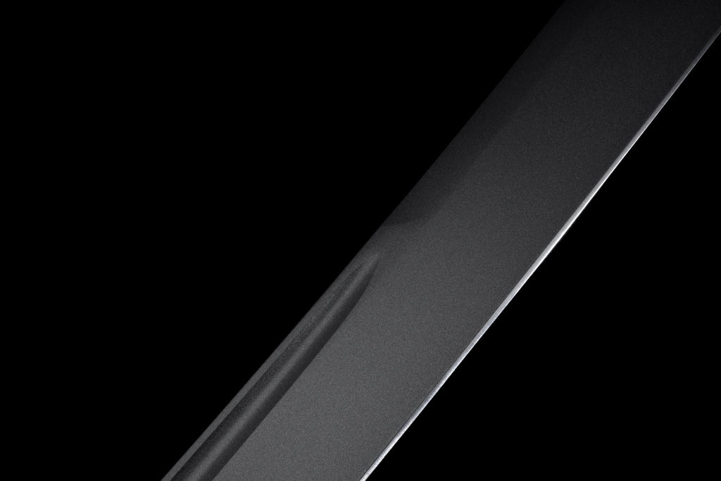 Die Klinge verfügt über eine schlanke matte Oberfläche, die Reflexionen minimiert und maximale Tarnung gewährleistet. Ihr aerodynamisches Profil, kombiniert mit einem verstärkten Klingenrücken, bietet kontrollierte Schneidleistung und kraftvolle Schlagfähigkeit.